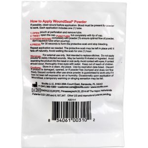 Pour Wound Seal Powder on bleeding wounds and apply pressure for 30 seconds