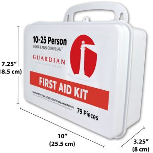 79 Piece ANSI Class A, 10 to 25 Person, in a lightweight, yet durable gasketed plastic case that is both portable and wall mountable. Meets requirements for ANSI case types I, II, III.
